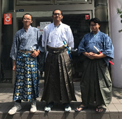 日本文化体験では、茶道、書道、着物の着付け体験が行われ、自分で袴を着ておもちゃの刀を喜んで構え侍に。清水の七夕祭りで日本のお祭りも楽しみました。当校の学生との交流会も行われ、英語と日本語を交えてのゲームや、日本人学生がダンスを披露したり一緒に折り紙をして盛り上がりました。