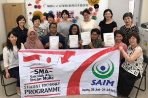 今年は、7月2日から7月20日までインドネシアのスラバヤにあるSAIM高校の学生3名と教員2名がこの短期プログラムに参加しました。今回は学生の短期留学だけではなく、日本語教師の育成も含まれており、インドネシア在住のインドネシア人日本語教師をより強化する目的としても実施されました。当校の日本語教師養成講座の授業内容を凝縮した内容で行いました。