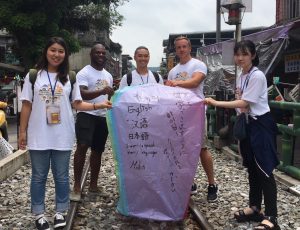 放課後は、実践大学生に案内してもらいながら、台北101(展望台兼ショッピングセンター)、淡水、そして夜店市などへ行きました。また、週末は、 「千と千尋の神隠し」の舞台になったとされる九份を訪れ、台湾茶や小龍包を楽しみながらライトアップされたアニメの世界を堪能し、十份では、願いを 書いたランタン(天燈)を飛ばしたりと、お楽しみ満載の研修となりました。