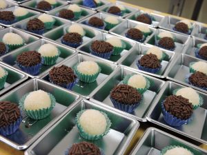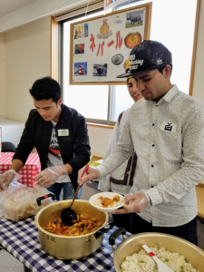 ワールドフェスの目玉イベントは「アジアンカフェ」と「ステージ」。学生たちが母国の料理をお出ししたり、パフォーマンスをご披露したりします。料理は、中止の連絡が当日朝ということもあり、すでに出来上がっており、なんとかお客様に召し上がっていただくことができました。千葉トシオ君(ブラジル)が持ってきてくれたブラジルのチョコレート菓子はお母さんの手作りということで、お客様の別腹を喜ばせてくれたようでした。