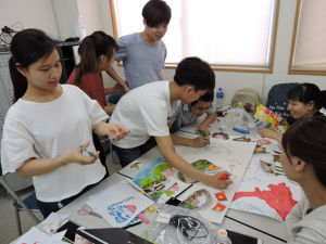 当校で行われる一年に一度の最大イベントがワールドフェスティバルですが、今年は、折しも台風12号が東海地方に接近していたため、まずはお客様や学生たちの安全を第一にと悩みに悩んだ末中止という決断を下しました。ところが、中止をご存じない方々や学校説明会を聞くために高校生が来られたため、28日(土)午前のみささやかに実施することになりました。