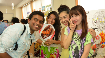 今年は、7月30日(土)と31日(日)、両日とも10時から15時までの開催です。当校の在校生が全員参加するこのイベント、当日は様々な企画をご用意しています。毎年大盛況なのは、当校に在籍する留学生と日本人による「アジアンカフェ」。世界各国の料理屋台が両日とも並び、料理は全て無料で提供されます。ステージでは、在校生によるダンス、カラオケなど国際色豊かなステージパフォーマンスが行われます。