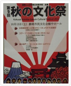 10月13日(土) 静岡市民文化会館で「国際ことば学院日本語学校」の秋の文化祭が