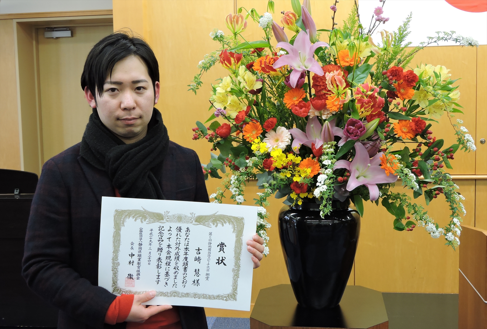 2月24日(金)私学会館(静岡市葵区)で静岡県の専門学校、各種学校が加盟する静岡県職業教育振興会の総会が行われました。その中で、対外的なコンテストなどで優秀な成績をおさめた学生に贈られる「対外成績優秀学生賞」の授賞式がありました。