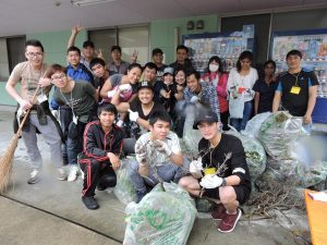 6月23日(土)の学校周辺の草刈り、ゴミ拾いのボランティア活動に留学生20名が参加しました。