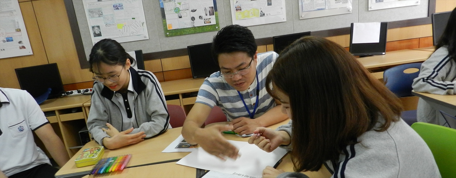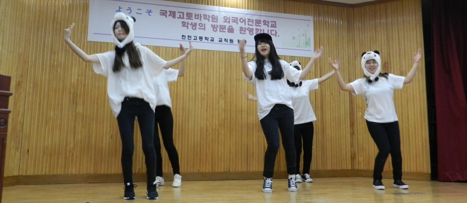 歌や踊りでの歓迎会に当校の学生もK-POPのダンスや歌、ベトナムの歌などで歓迎のお礼をしました。当日は、高校の国語の授業にも参加させていただき、「韓国と日本の心の架け橋」をテーマに韓国語で詩を作りました。