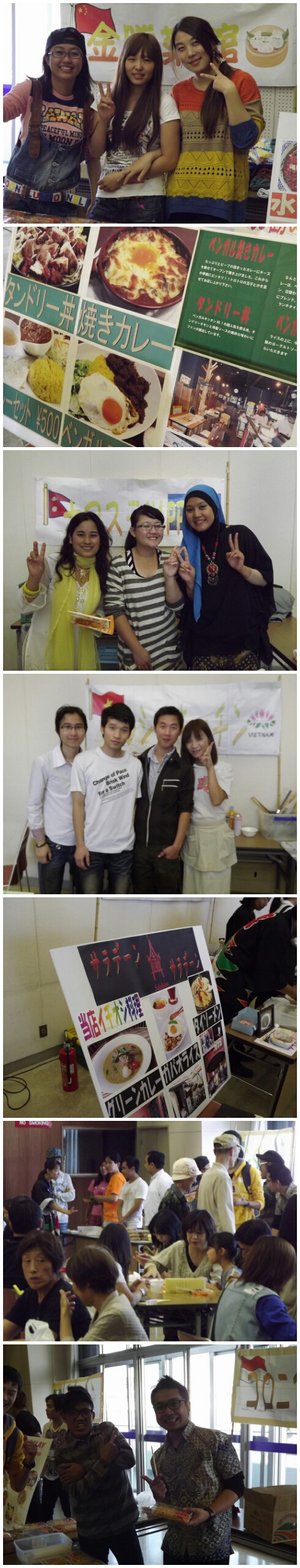 トピックス一覧へ 2012.10.14 ニュース 秋の文化祭「ことば屋台村」! 秋の文化祭では、 「ことば屋台村も大盛況」、各国の料理が楽しめます。 国際ことば学院専門学校の学生も応援にかけつけました。
