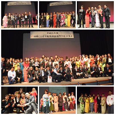 静岡インザライフ(静岡市葵区)で行われた国際ことば学院外国語専門学校2013年度生の卒業式が行われました。
