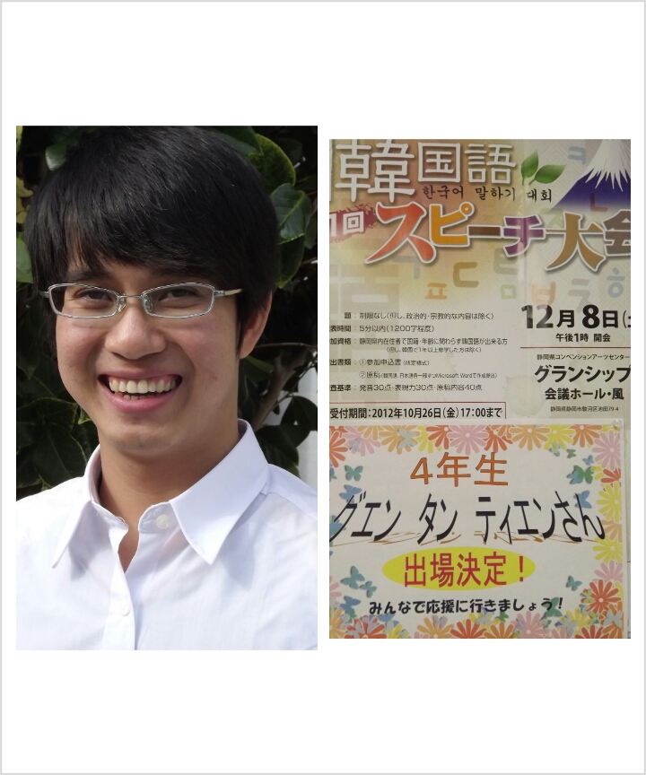 ベトナムから日本へ留学後、日本語を勉強し、私たちの学校では英語、中国語韓国語を勉強しているティエンさんですが、日頃の努力の結果です。