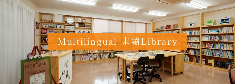Multilingual 末續Libraryは、産声をあげたばかりの小さな図書室です。忙しくて本を読む時間がない学生たちに何とか本を読んでほしいと、建学の理念である「多言語の学び」にふさわしい図書室を目指してオープンしました。多言語・多文化をテーマとする専門図書館で、多言語学習のための書籍や異文化に触れる絵本を中心に揃えています。