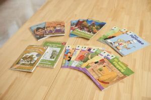 多読活動のための読み物については、多読の方法を学んでもらうためもあり、ベーシックな読み物が中心です。